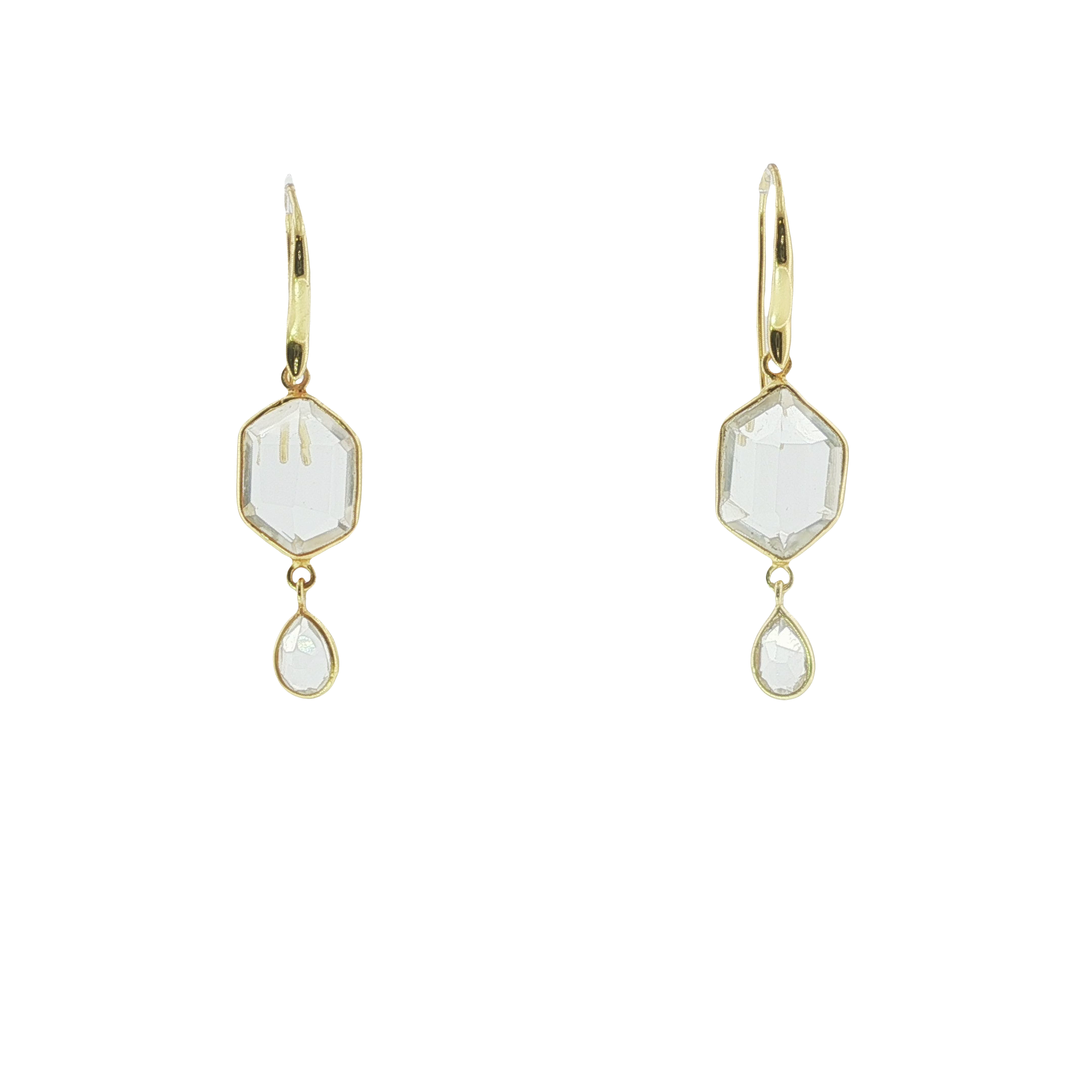 4. STERLING SILVER 18K YELLOW GOLD VERMEIL HANGING CRYSTAL QUARTZ EARRINGS